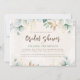 Este diseño presenta una invitación a la ducha de novia con un estilo floral, botánico, boho, con flores elegantes de acuarela y un guión elegante de caligrafía, con eucalipto, vegetación y follaje