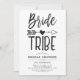 Invitaciones de despedida de soltera personalizadas para tu tribu de novia especial. Cuenta con un aspecto clásico de tema negro y blanco con las palabras tribu de novia escritas en una fuente de estilo manuscrita. Entre ambas palabras hay una flecha tribal que atraviesa un corazón.