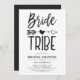 Invitaciones de despedida de soltera personalizadas para tu especial tribu de novia. Cuenta con un look clásico de tema negro y blanco con las palabras 'bride tribe' escritas en una fuente de estilo manuscrito. Entre ambas palabras hay una flecha tribal que atraviesa un corazón.