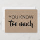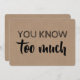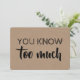 "Sabes demasiado". "¿Serás mi empleada de honor?" Graciosas tarjetas de propuesta en un estilo moderno de tipografía. Siéntase libre de cambiar "doncella de honor a "Matrón de honor" o "dama de honor".