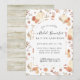 Moderno estilo arco Bridal Shower Invitation (pero puedes cambiar toda la información del evento para adaptarla a tu propia ocasión). Calabazas elegantes, acuarelas blancas y naranjas con flores de otoño florecientes y follaje de hojas de color giratorio. El reverso tiene un fondo rústico de madera clara. Podemos cambiarlo por un color simple. Obra de arte pintada y diseñada gráficamente por la artista y diseñadora con licencia internacional Audrey Jeanne Roberts©