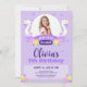 Celebra el día especial de tu princesa con esta encantadora invitación de cumpleaños a la princesa de cisne. Con un hermoso diseño floral acuático, un cisne dulce con corona y un espacio para tu foto, esta invitación es perfecta para una mágica fiesta de cumpleaños.