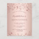 Una invitación moderna, elegante y glamurosa para un chica de Quinceañera, 15 años de fiesta. Un falso fondo metálico rosa dorado con elegantes estrellas rosas de oro. El nombre está escrito con un guión moderno de estilo con letras de color rosa oscuro y dorado. Plantillas para los detalles del fiesta. Fondo de oro rosa. Sugerencia: Si no desea que se vea como una postal, haga clic en personalizar, vaya a la parte posterior y quite el separador y el sello postal.