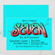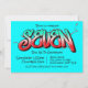 Una invitación de graffiti azul neón brillante y desordenada apta para un niño de siete 7 años.