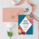 Versión turquesa brillante. Tipografía elegante con elementos florales a mano en colores de verano brillantes. Plantilla de personalizado para su fecha e información personales. Existen diferentes combinaciones de colores y diseños de texto. De la moda clásica a la simple moderna, por favor vea la colección en mi tienda.