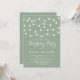 Esta elegante y caprichosa invitación a la fiesta de cumpleaños incluye luces blancas de hada colgadas en un sabio fondo verde. Personalice agregando sus detalles. Esta sabia invitación de cumpleaños verde es perfecta para fiestas al aire libre.