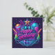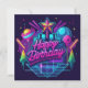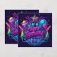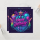 Este diseño consiste en un fondo iluminado con neón con acentos que brillan en la oscuridad y tipografía "Feliz Cumpleaños".
