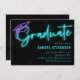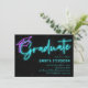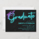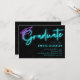 Invitación Brillo de luz azul neón | Graduación Retro Moderna