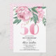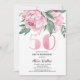 Invitación Brillo Floral Verde de Peonía Rosa 50 Cumpleaños