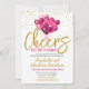 Una hermosa invitación de cumpleaños de 30.º aniversario 'brindis por 30 años'. Esta fabulosa invitación presenta globos en forma de corazón de color rosa intenso sobre un fondo de confeti dorado. Fácil de personalizar con los detalles de su celebración de 30.º aniversario de bodas.