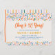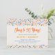Celebre tres décadas de amor con esta invitación de fiesta de aniversario "Salud por 30 años". Con un borde festivo de confeti en tonos modernos y coloridos y combinado con una tipografía minimalista de moda, este diseño es perfecto para marcar un hito alegre. El reverso incluye un fondo de rayas caprichosas y lindas para un acabado divertido y elegante. Fácilmente personalizable para cualquier año de aniversario de bodas, y disponible como tarjetas impresas profesionalmente o una descarga digital conveniente.