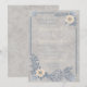 Un diseño de invitación suave y elegante inspirado en la belleza de la costa. Delicadas flores de crema se emparejan con elementos botánicos azules suaves y sutiles acentos de conchas marinas, creando una estética tranquila de la costa perfecta para celebraciones de verano. El fondo texturizado añade un toque de encanto vintage mientras que la disposición aireada deja mucho espacio para detalles personalizados del evento.