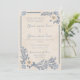 Un diseño de invitación suave y elegante inspirado en la belleza de la costa. Delicadas flores de crema se emparejan con elementos botánicos azules suaves y sutiles acentos de conchas marinas, creando una estética tranquila de la costa perfecta para celebraciones de verano. El fondo texturizado añade un toque de encanto vintage mientras que la disposición aireada deja mucho espacio para detalles personalizados del evento.