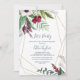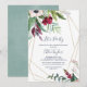 Esta invitación de brisa tropical geométrica para fiesta es perfecta para un evento elegante de primavera o verano. El diseño floral presenta flores rojas, borgoña, rosadas y blancas sobre una cama de eucalipto acuarela y vegetación tropical con un ambiente relajado hawaiano. Esta invitación es perfecta para una fiesta de compromiso, despedida de soltera o cualquier evento o fiesta.