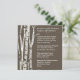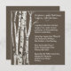 La invitación cuadrada elegante del boda hecha en marrón, con los gráficos del blanco majestuoso raspó los árboles de abedul, adornando el lado izquierdo de la invitación. El texto, en blanco, es completamente adaptable adaptarse a sus necesidades del boda. Invitación preciosa para un boda de la caída. Productos a juego disponibles.