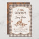 Saddle up for a sweet celebration! This gingham cowboy baby shower invite features western flair with a charming twist—easy to edit, download, and print or share digitally.