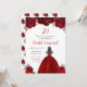 Invitación Brown Hair Princess Red Floral Birthday Party