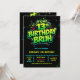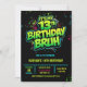neon 13th birthday invitation, 13th birthday party, 13 thirteen, green black, gamer gaming tech computer pc, boys him tween preteen, modern contemporary futuristic sci fiedgy urban, racing karts auto