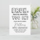 ¡Manténgalo helado con esta "Bruh" Invitación de Cumpleaños! Un diseño limpio y sin pretensiones para el adolescente demasiado fresco para los frioleros. Con un fondo blanco y claro con texto atrevido y juguetón, esta invitación aporta la mezcla perfecta de actitud y simplicidad para cualquier celebración relajada de cumpleaños o con temática de juegos. Para el chico que dice "bruh" más que "feliz cumpleaños" —esta invitación tiene razón. BRT326