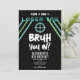 A teen boys "Bruh" themed birthday invitation using cool typography. A custom kids neon gaming "pizza, cake, laser tag " teenage boys birthday gamer invitation design perfect for any teens gaming birthday party theme. Customize this "Bruh" gamer birthday invitation with your own text and make it your own!