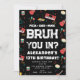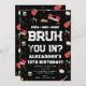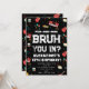 A teen boys "Bruh" Music Band themed birthday invitation using cool typography. A custom kids black and white "pizza, cake and music " teenage boys birthday invitation design perfect for any teens birthday party theme. Customize this "Bruh" birthday invitation with your own text and make it your own!