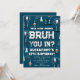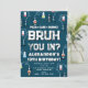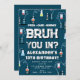 A teen boys "Bruh" science experiment themed birthday invitation using cool typography. A custom kids black and white "pizza, cake and music " teenage boys birthday invitation design perfect for any teens birthday party theme. Customize this "Bruh" birthday invitation with your own text and make it your own!