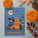 Invitación Bruja de Halloween, gato negro y Fiesta de calabaz