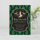 Elegante patrón de damasco de halloween verde y negro con bruja dorada y murciélago clipart y marco vintage