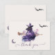 Tarjetas de agradecimiento para despedida de soltera de Halloween con acuarela "esta bruja se casa" con elementos florales púrpura y naranja. Presentan la bonita parte posterior de una bruja montando una escoba. Perfectas para una despedida de soltera, fiesta de compromiso, despedida de soltera cerca del día de Halloween. Para hacer más cambios, vaya a Personalizar esta plantilla. En la parte inferior verás “¿Quieres personalizar aún más este diseño? Haz clic en EDITAR usando la herramienta de diseño. Desde allí puedes cambiar algunas de las fuentes y algunos colores, mover cosas o eliminar lo que necesites. Un poco de contenido generativo de mitad de camino combinado con elementos dibujados a mano.