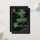 Invitación Bruja Verde Escoba Voladora Fiesta de Halloween