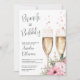 Cute and fun brunch and bubbly bridal shower design. A classic but modern whimsical look with pink, green, cream and dark gray coloring. Edit all of the text to your own information. Features champagne glasses for celebrating, cute bubbles of course, and a blush pink flower. And overall pink vibe, but you can also change out the background color (front and back) and text colors to make it less pink! Brunch And Bubbly Blush Pink Floral Bridal Shower Invitation.