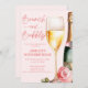 ¡Este es un brunch rosado y una cena con flores de buey Mimosa Champagne invitación a la fiesta de cumpleaños!