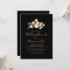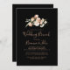 Esta invitación al brunch de boda floral real, de color negro, es perfecta para un evento moderno. El diseño se compone de flores acuáticas elegantes, rosas y blancas con hojas de color verde esmeralda.