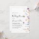 Esta clásica y colorida invitación al brunch boda floral silvestre de otoño es perfecta para un evento moderno. El diseño se compone de flores silvestres amarillas, violetas y blancas con follaje en un fondo de color rosa y verde.