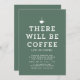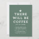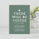 ¡Habrá café! Invite a los bodas a un brunch post-boda con café y más café. Esta divertida invitación al brunch incluye un negrita de color blanco sobre un fondo verde sabio oscuro y un ilustracion de taza de café. Amigos y familia pueden reunirse después del boda para un brunch de despedida que seguramente será un buen momento. Esta invitación también funciona bien para otras ocasiones y se puede encontrar en más colores en la colección de Lea Delaveris Design. También disponible como descarga de invitación a brunch digital.