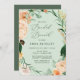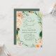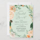 Hermosas invitaciones para el brunch de novias con un elegante marco moderno y neutro de color pastel acuático con vegetación botánica floral en suaves tonalidades de tierra de melocotón, naranja, suave rubor, amarillos y muchos tonos verdes de verde salado a verde claro y más profundo. Sus detalles personalizados se muestran en una distribución tipográfica elevada que coloca al invitado de honor en el centro y frente.