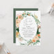 Hermosas invitaciones a la ducha de novias con un elegante marco moderno y neutro de color pastel acuático con vegetación floral botánica en suaves tonalidades de tierra de melocotón, naranja, suave rubor, amarillos y muchos tonos verdes de verde salado a verde claro y más profundo. Sus detalles personalizados se muestran en una distribución tipográfica elevada que coloca al invitado de honor en el centro y frente.