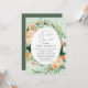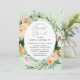 Hermosas invitaciones a la ducha de novias con un elegante marco moderno y neutro de color pastel acuático con vegetación floral botánica en suaves tonalidades de tierra de melocotón, naranja, suave rubor, amarillos y muchos tonos verdes de verde salado a verde claro y más profundo. Sus detalles personalizados se muestran en una distribución tipográfica elevada que coloca al invitado de honor en el centro y frente.
