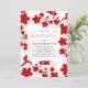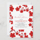 Elegante y sencilla invitación a la ducha de novias con flor de flores de cerezo rojo y vibrante caligrafía de texto.