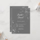 Captura la esencia de la sofisticación atemporal con nuestras exquisitas invitaciones al brunch de la ducha de novia. Diseñadas con un suave fondo gris de carbón vegetal y adornadas con un texto blanco moderno, estas invitaciones exudan clase y estilo. Minimalista pero cautivadora, nuestras invitaciones cuentan con un grupo de diamantes espumosos esparcidos en las esquinas opuestas, lo que añade un toque de glamour y lujo a su día especial. Haz una declaración con todos los detalles: desde el momento en que tus invitados reciban su invitación, estarán encantados por el encanto y la elegancia que irradia. Crea recuerdos inolvidables con invitaciones tan impresionantes como tu historia de amor. Creado por Simply Farmhouse Press.