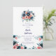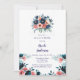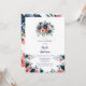 Un delicado ilustracion acuático de un ramo boda con flores color azul claro, azul oscuro, coral y rosa claro. La paleta de colores suaves y la acuarela crean un diseño romántico y elegante, perfecto para materiales relacionados con el boda.
