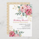 Elegante y elegante invitación de cumpleaños florido con impresionantes acuarelas rojas y rosadas flor de piedra con frondosos dorados. Usted puede fácilmente personalizar los detalles del fiesta incluyendo la edad para hacerlo aún más personalizado. Comparte la alegría con tus amigos y familia y haz que este cumpleaños sea un hito para recordar!