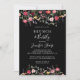 Este brunch de flores silvestres y la burbuja de la ducha de novia son perfectos para una moderna ducha de boda. El diseño se compone de una variedad multicolor de flores rosadas, ruidosas, violetas, violetas, violetas, violetas, borgoñas y salvajes en un fondo negro.