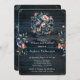 Un ilustracion de clipart acuarela de una peonía azul marino y de cobre envuelto en cuerda de margarita y alambre de cobre. Las peonías tienen guarnecido de oro en sus pétalos. También hay flores pequeñas del mismo color que las peonías en el ramo. Cuadros de madera azul marino para el fondo. Vino y botella de vino en el centro de las peonías.