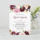 Esta invitación al brunch con flores de color burdeos y verde es perfecta para una ducha rústica de bodas. El diseño presenta elegantes ramos de flores verdes, ruidosas, violetas, rojas y burdeos, inspiradores de la belleza natural.