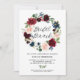 Invitación de brunch de la corona borgoñona y floral azul. Invitar a la familia y amigos a una ducha de novias con esta invitación femenina y rústica. Esta invitación al personalizable incluye una corona floral acuática de flores azules, burdeos, rojas y rubíes con follaje. Esta invitación floral es perfecta para eventos de otoño y bohemia. Los elementos coincidentes están disponibles.