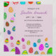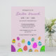 Muchos huevos de Pascua invitando a un brunch de Pascua y a una caza de huevos.