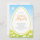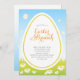 Invite a su familia y amigos a su Fiesta de Pascua con estas lindas invitaciones a la fiesta de Pascua con un enorme marco de huevo de Pascua con los detalles de su fiesta, un cielo azul con mariposas y hierba verde con margaritas. Personalizar con su propio texto.