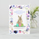 Acuarela Adorable Cacería de Huevos en Semana Santa y brunch de flor silvestre floral invitada a fiesta de primavera. Conejo de conejo con tres huevos de Pascua y un hermoso guardabarros con flores de primavera boho que incluye pasteles de flores de maíz y flores de prado de jardín. Fácil de personalizar el guión moderno de tipografía de escritura a mano azul marino y carbón vegetal para que puedas añadir todos los detalles del fiesta. Pintura original de la artista Catherine Sweetman