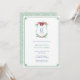 Esta elegante invitación verde, roja y azul presenta follaje y bayas navideñas. El escudo del monograma está rodeado por un borde "Greek Key" y en el reverso tiene un respaldo con patrón "Greek Key". He configurado la plantilla para un Brunch de recién casados, pero todos los campos de texto son personalizables según tus necesidades. Me parece que este diseño funciona muy bien para una celebración de aniversario de bodas durante las fiestas. En el reverso, puedes cambiar el color de contraste (mostrado aquí como un verde oscuro) a cualquier color que desees entrando en la herramienta de diseño (debajo del área de personalización de texto, haz clic en "personalizar más") y luego cambiando el color de fondo en el reverso.
